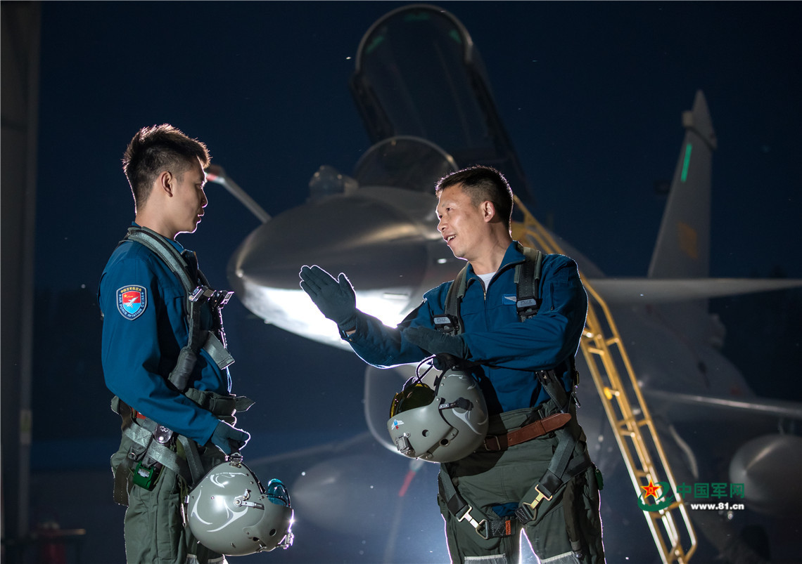对抗结束,周本祥(右)向年轻飞行员传授技艺。