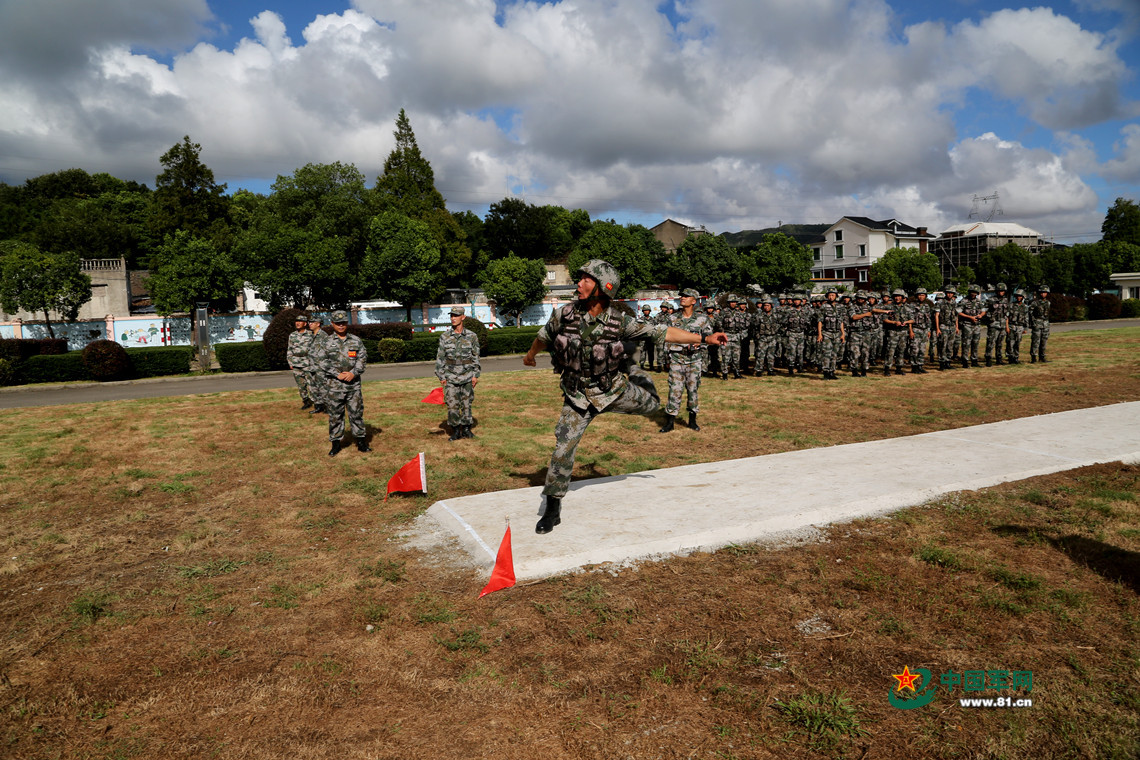 新条令比武考核连长熊健投弹。
