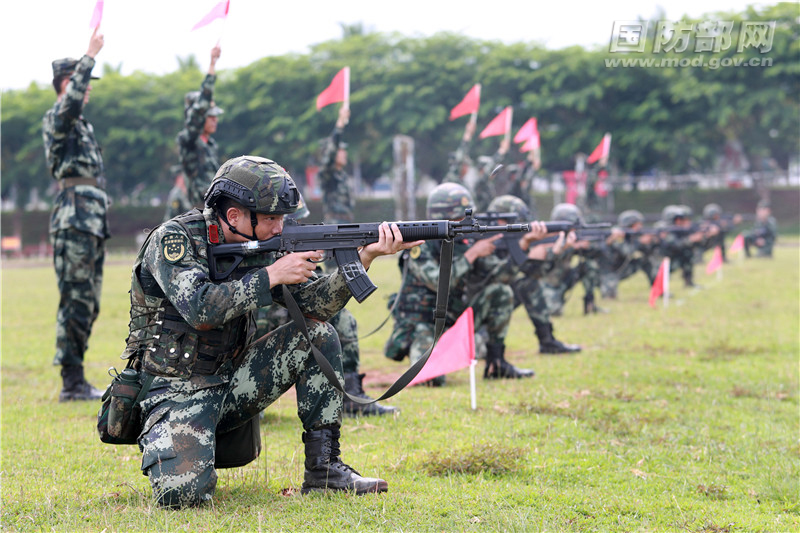 参赛官兵跪姿对隐显目标进行射击。雷辙 摄