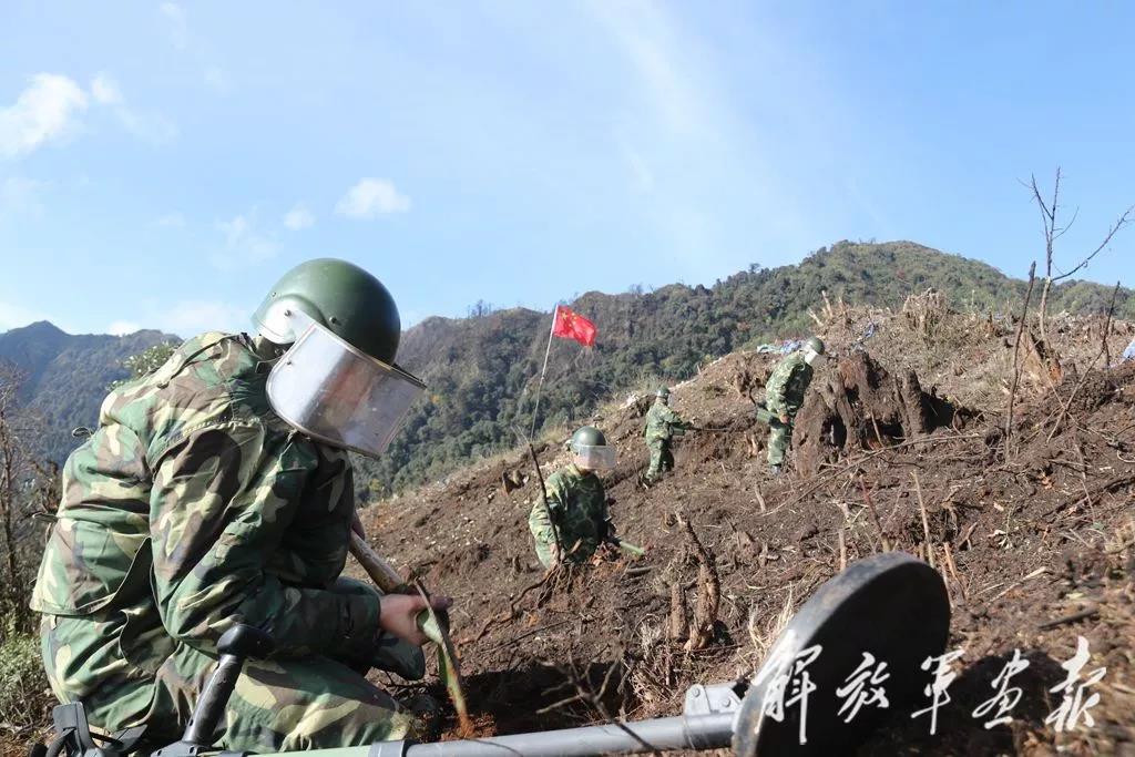 “装填炸药,爆破作业!”伴随着“轰隆隆”的巨响,进入雷场的安全通道成功开辟。紧接着,搜排手头戴防爆头盔,身着防护服,手持探雷器,在雷场细致地展开搜排作业。