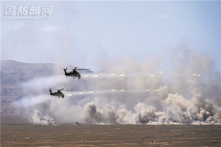 铁流滚滚展雄风,陆空协同战犹酣。联合任务部队采取陆航冲击、装甲突击、机降破袭、空中突击等行动,对“敌”实施立体多路攻击,彻底消灭残存的“恐怖分子”。