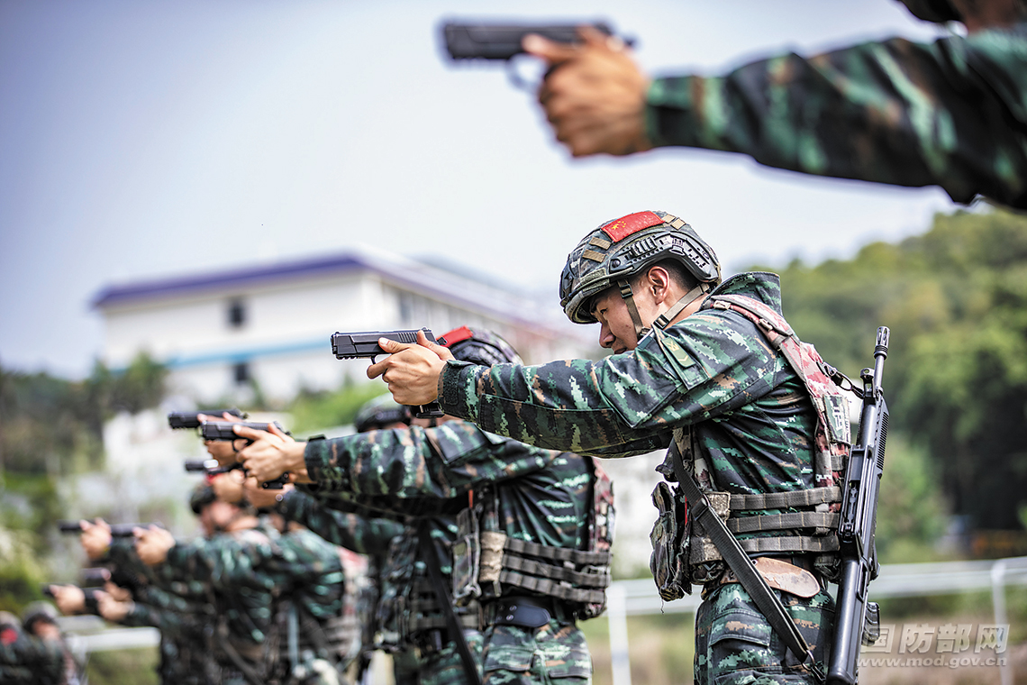 武警广西总队北海支队组织特战队员进行精度射击、枪种转换射击等课目训练,锤炼官兵制胜本领。
