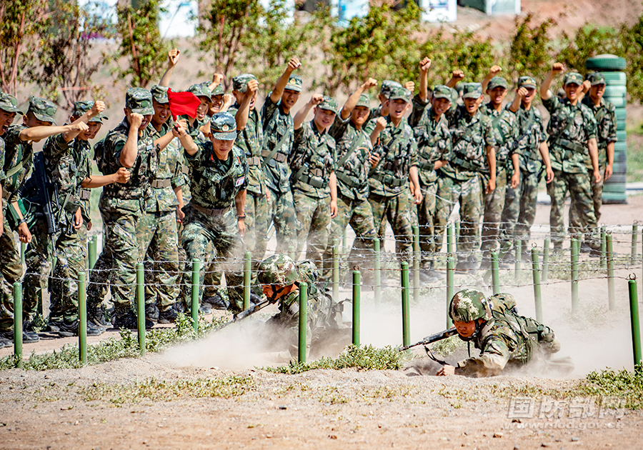 匍匐前进比拼。余博 摄