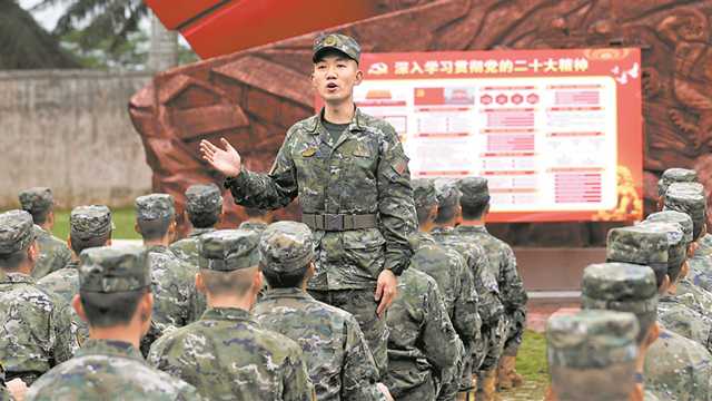 连日来,武警海南总队组织官兵通过多种形式学习党的二十大报告。