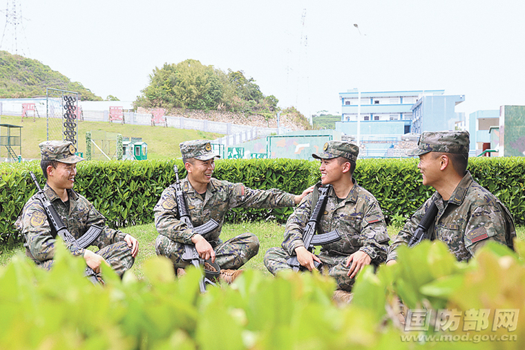 闲暇时,田威(左二)和战友谈心。刘欢 摄