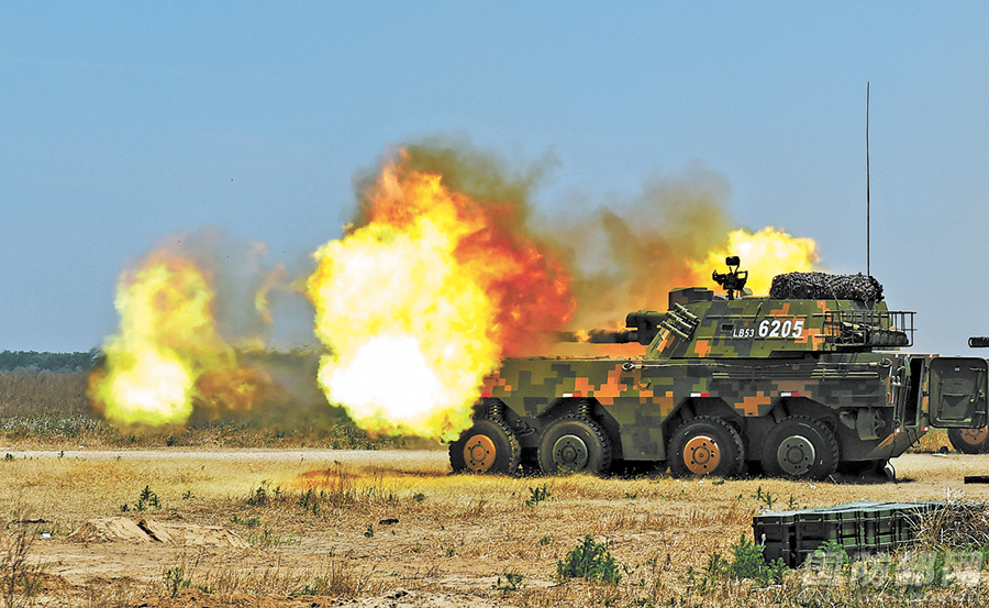 某型榴弹炮对地面目标进行打击。苗朕 摄