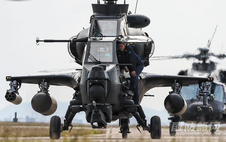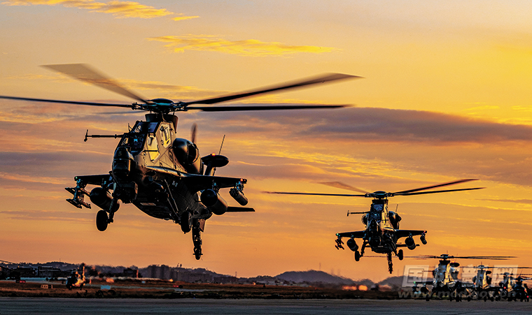 抵近预定空域,两架武装直升机交替掩护,侦搜“敌”目标位置。发现目标后,飞行员快速发起进攻,瞄准、锁定、发射……操作一气呵成,完成模拟攻击。