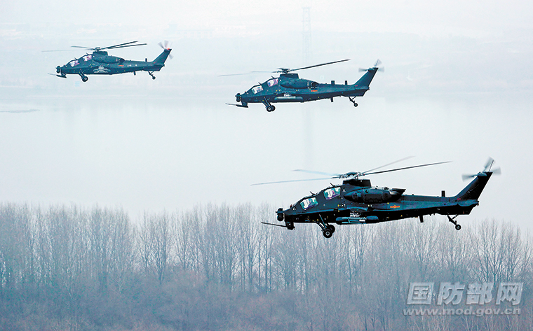 随着一发绿色信号弹划破天际,东部战区陆军某旅数架直升机盘旋升空,飞往目标空域。该旅利用复杂气象条件开展多机编队、战术攻防、目标搜索、模拟打击等多课目训练,在危局险局中锤炼实战本领。