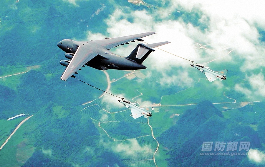近日,空军航空兵某旅组织空中加油训练(视频截图)。