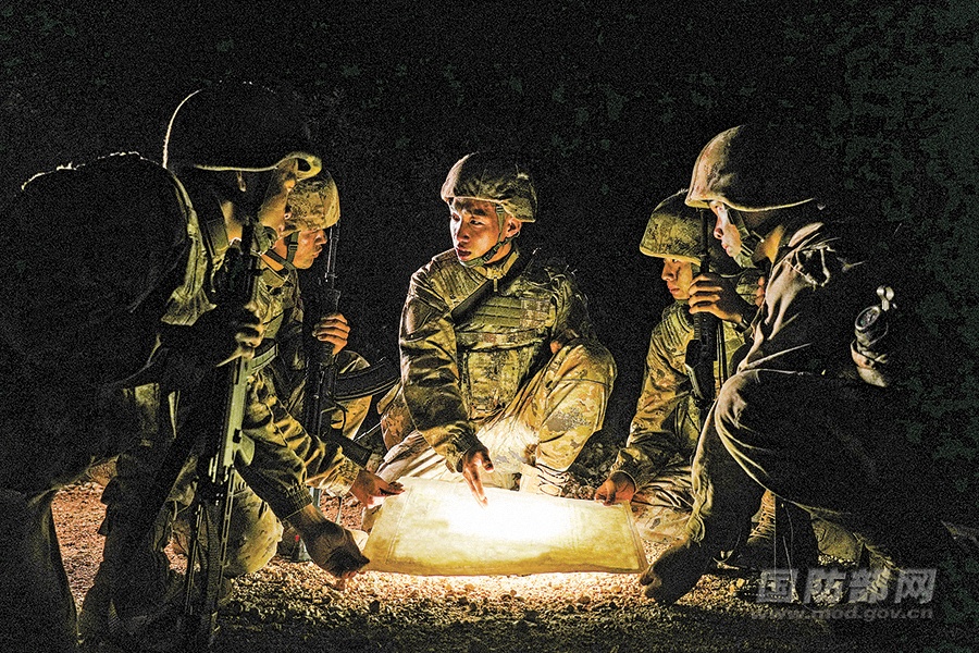 时至子夜,率先走出密林的侦察组登上某高地,借助仪器侦测“敌”动态。此时,官兵迎来最后一项任务:破袭“敌”雷达站。