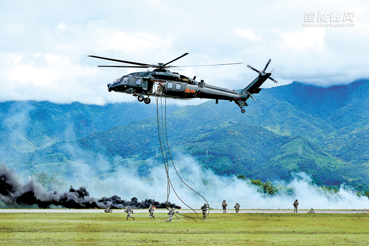 近日,第75集团军某旅突击队员进行空中索降训练。谭阳林摄