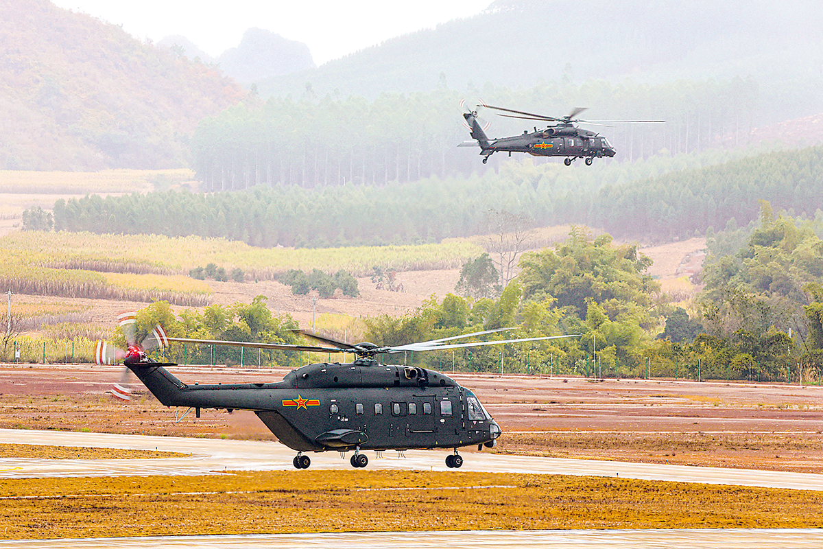 早春,陆军某旅组织多机型飞行训练。 解放军报特约通讯员 孙长义摄