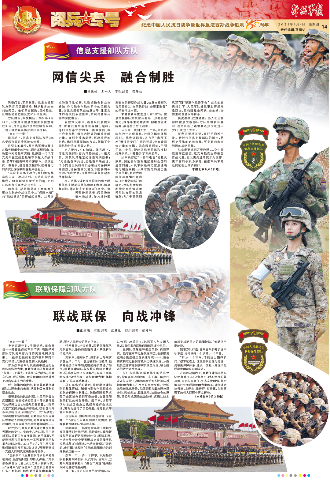 这坚实的脚步,源自我军通信事业在烽火硝烟中的淬炼,源自高原深山、海岛密林间的强军实践,也源自一代代信支尖兵在党的坚强领导下融入作战体系、勇攀科技高峰的不懈奋斗。虽成立仅一载有余,但信息支援部队铿锵有力的步伐已深深镌刻在强军征程上。