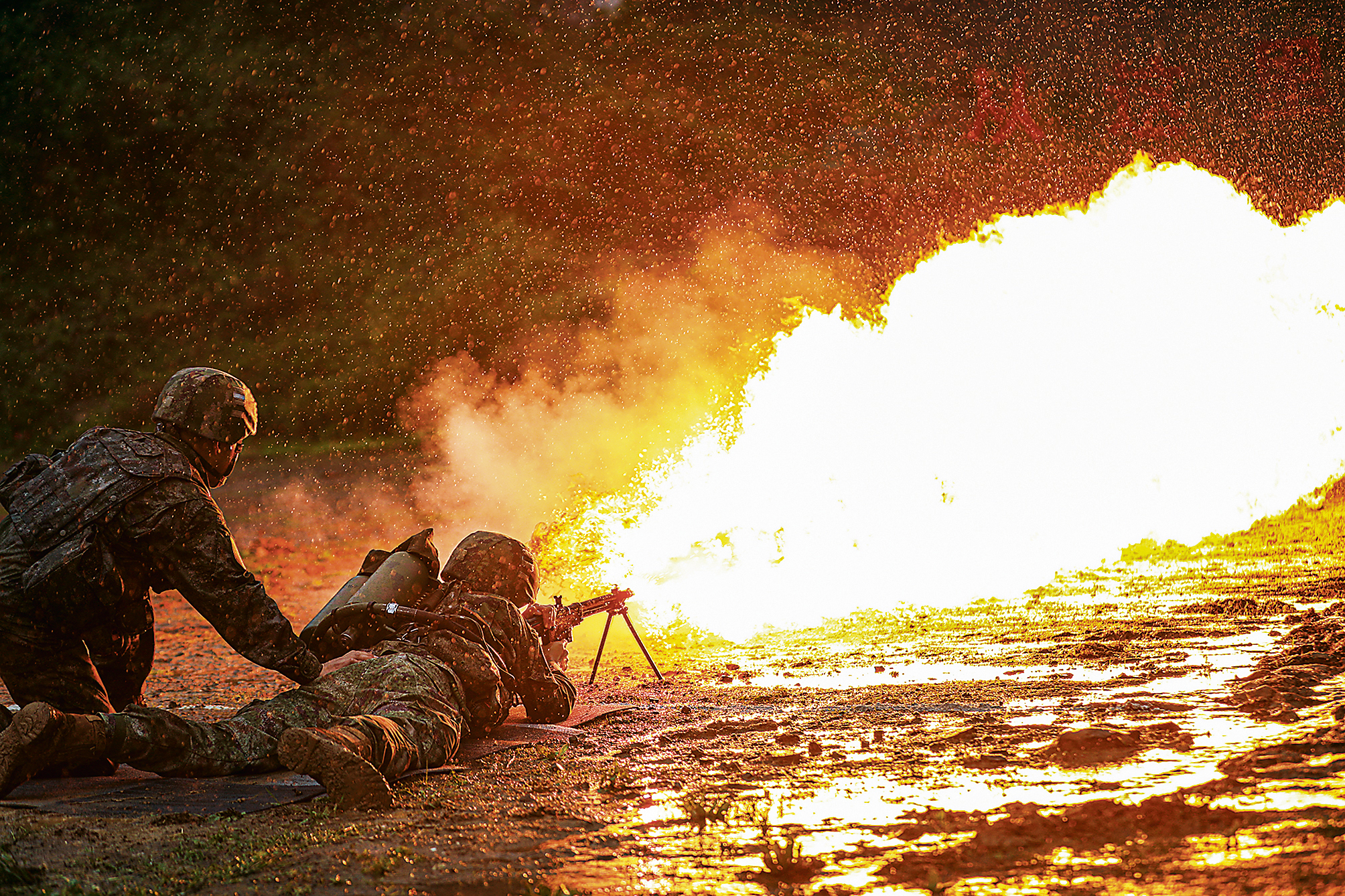 官兵进行喷火训练。张飞跃 摄