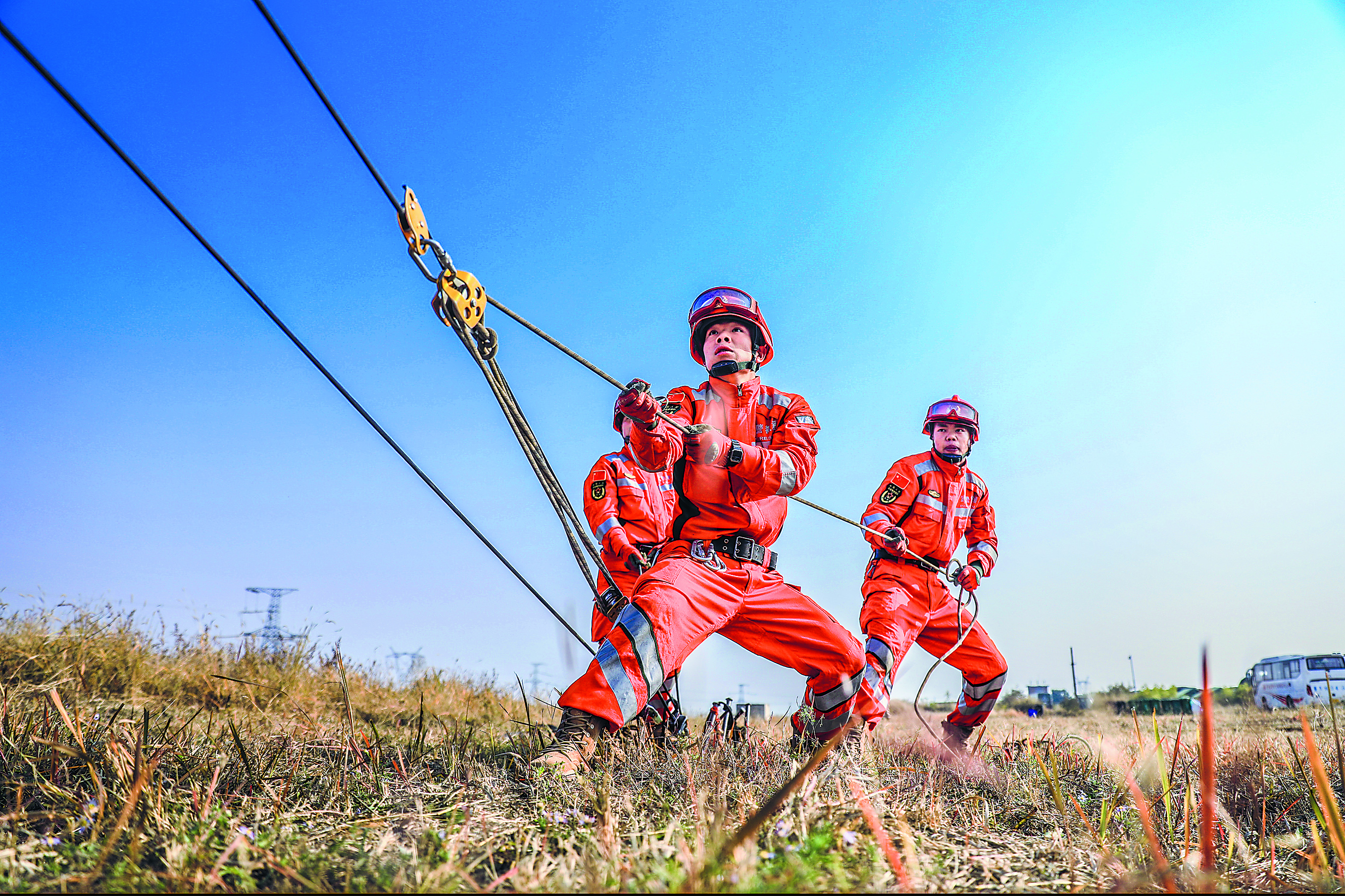 工兵分队开展绳索救援训练。张凯 摄