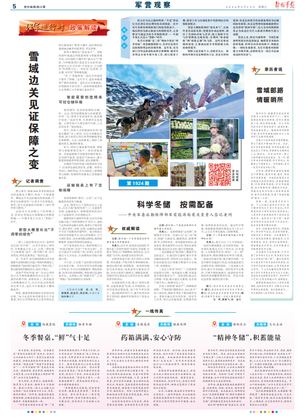 负责人:近年来,驻高原边防部队冬储冬备工作始终坚持“早谋划、早部署、早落实”原则,以“保障精准、物资充足、官兵满意”为目标,高质量完成各项任务。