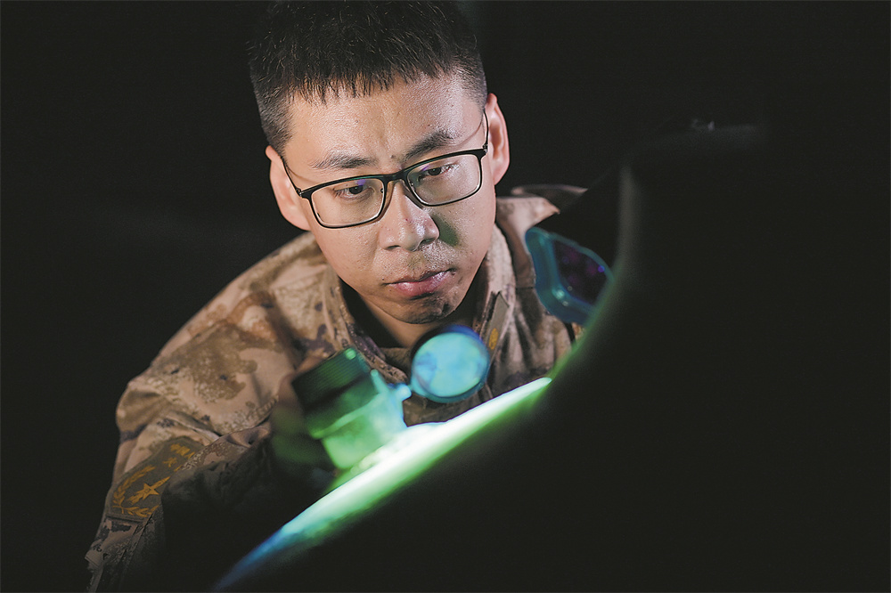 火箭军某部工程师王江帆和同事观察射线胶片。刘明松摄
