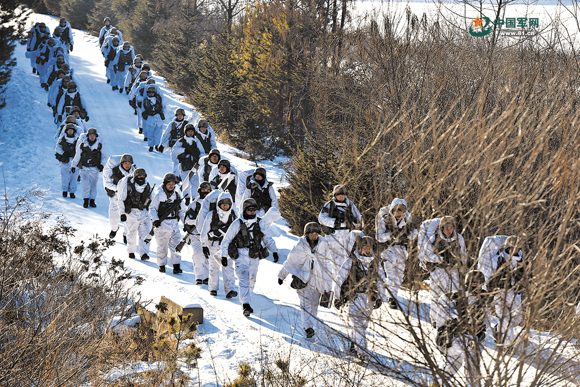 1月4日,第78集团军某旅在严寒条件下展开徒步行军训练,磨砺官兵过硬战斗作风。刘议闪摄