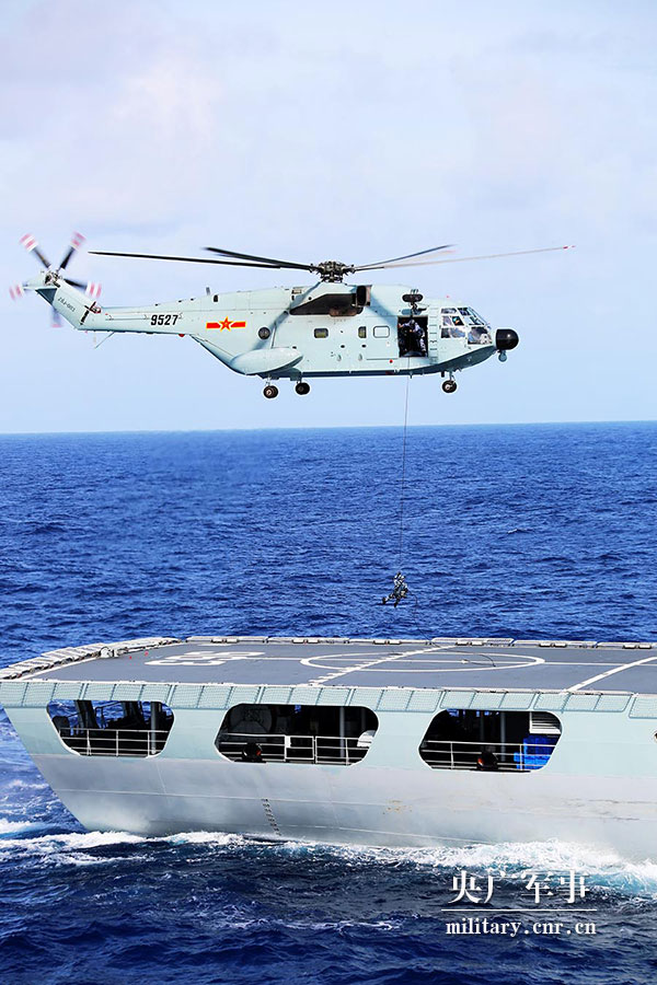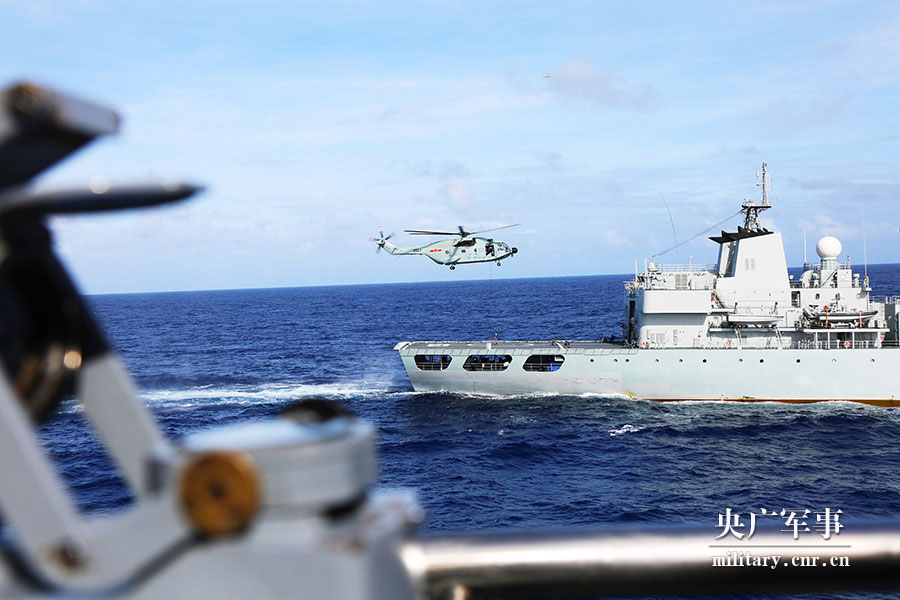 舰载直升机搜索可疑商船 谢芳摄