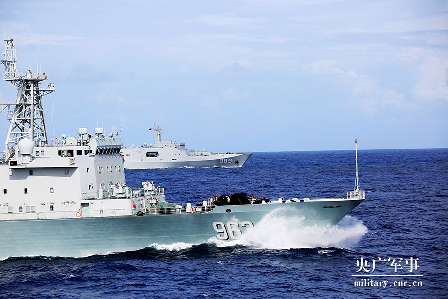 央广网2月8日消息(周启青 周演成 记者谢芳)近日,南部战区海军远海联合训练编队破浪疾驰,一场实战化背景下的临检拿捕演练拉开了序幕。演练背景是,某不明商船(由洪湖舰模拟)疑似运送违禁物品,合肥舰、长白山舰奉命对可疑商船进行临检拿捕。