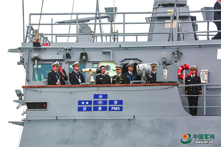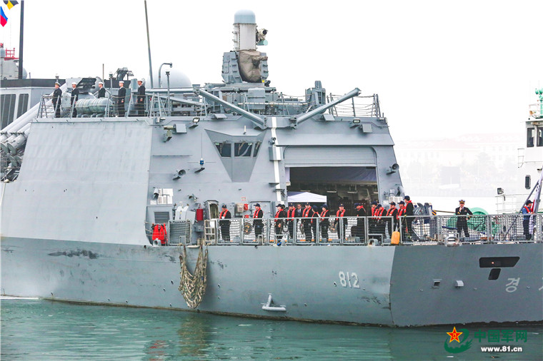 4月21日上午,参加中国海军成立70周年多国海军活动的韩国海军“京畿”号(GYEONG GI 舷号812)护卫舰,抵达青岛大港码头,并举行针对在华韩国民众代表的舰艇开放活动。