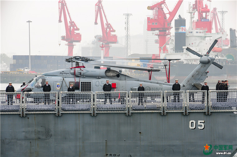 4月21日上午,澳大利亚阿德莱德级(佩里级)护卫舰“墨尔本号”(舷号05)抵达青岛大港码头,参加中国海军成立70周年多国海军活动。
