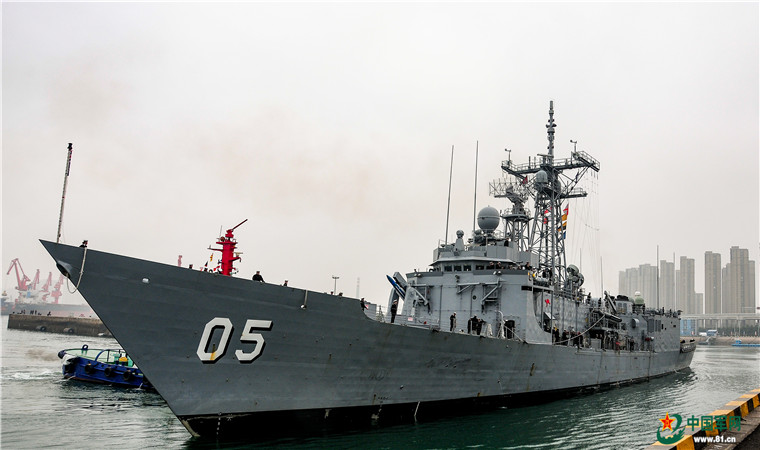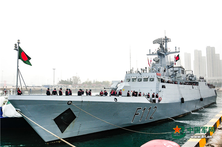 4月21日上午,孟加拉国“决心”号护卫舰(BNS PROTTOY号 F112)抵达青岛大港码头,参加中国海军成立70周年多国海军活动。
