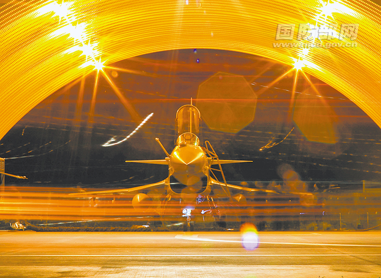4月10日深夜,南部战区空军航空兵某旅开展飞行训练,提升部队实战能力。图为准备出发的战机。解放军报特约记者 谢中武摄