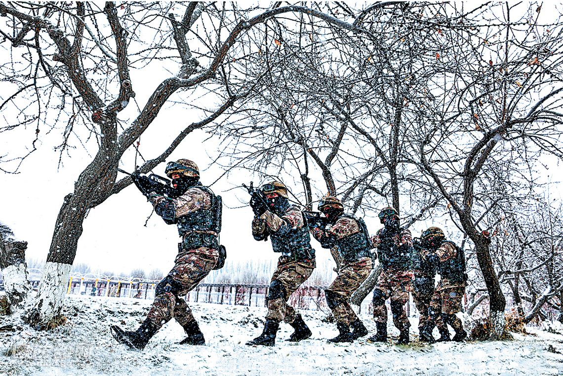 战略支援部队某旅在冰天雪地练兵。刘国辉摄