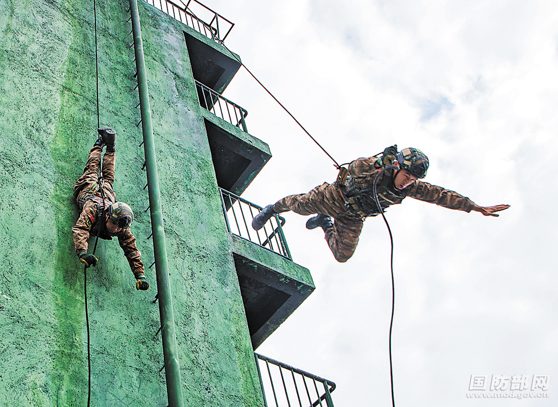 武警贺州支队特战队员进行训练。张毕海摄
