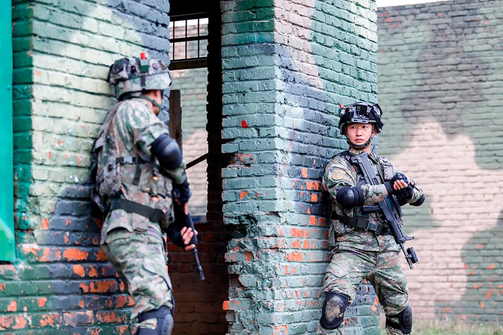 第71集团军“临汾旅”组织官兵进行城镇攻防演练(2022年11月21日摄)。新华社发(何丹 摄)