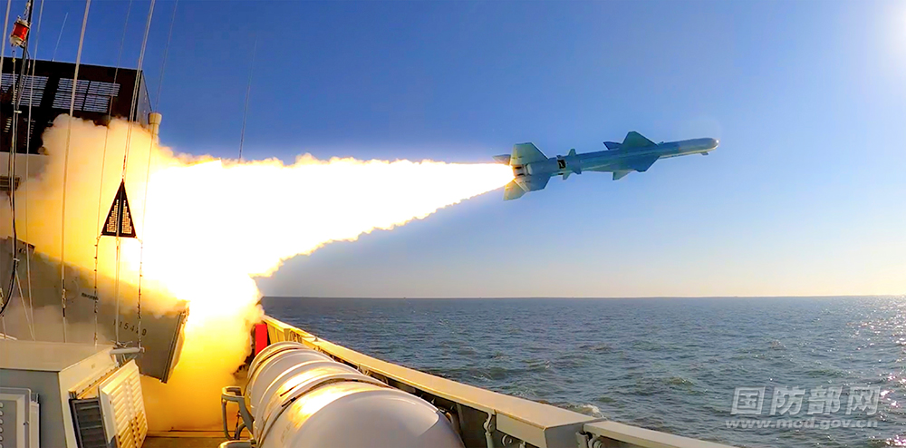 “5、4、3、2、1,发射!”一声令下,导弹拖着尾焰呼啸而出,直扑“敌”舰……
