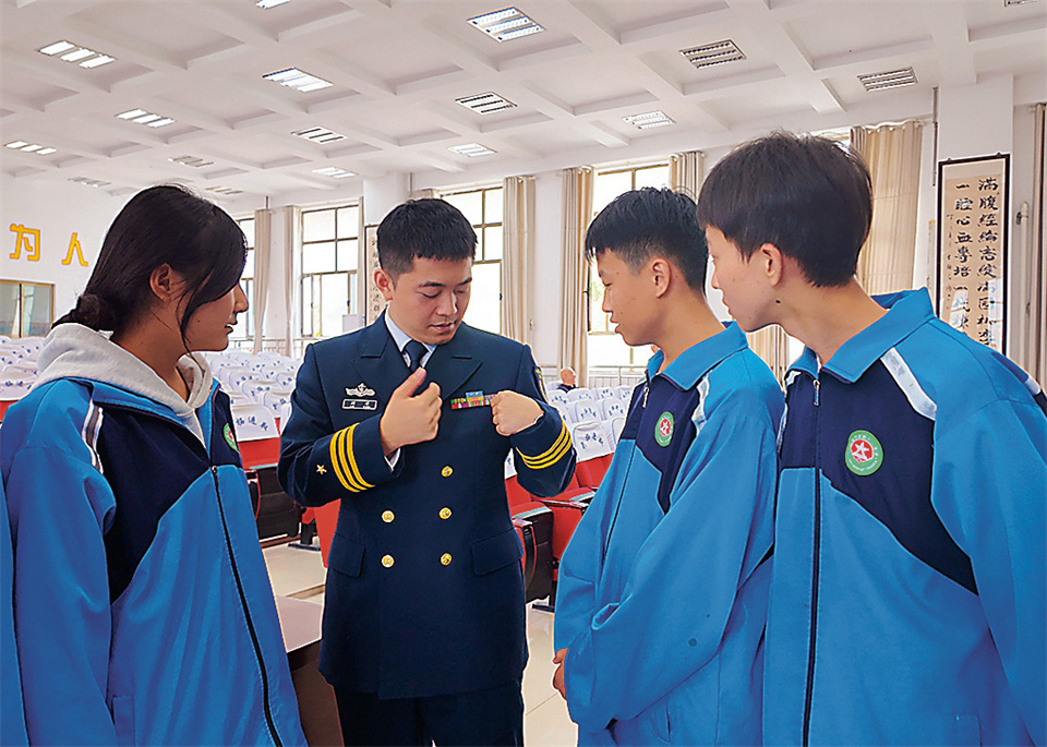 “同学们,希望你们努力追逐心中梦想,更期待你们成为一朵朵奔涌的浪花,汇入人民海军的星辰大海。我们在万里海疆等着你们,迎接你们!”交流结束之际,刘洋向现场学生发出邀请。