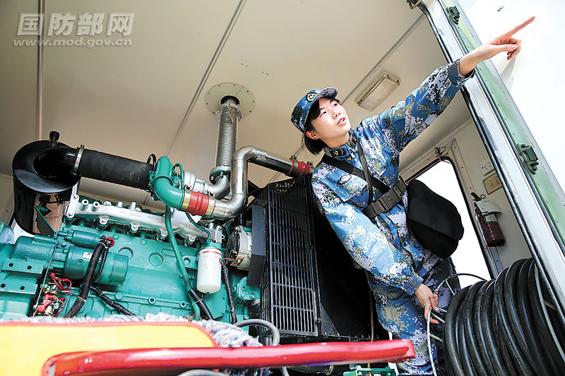 从通信专业转岗的下士郑英杰已成为油机班长。