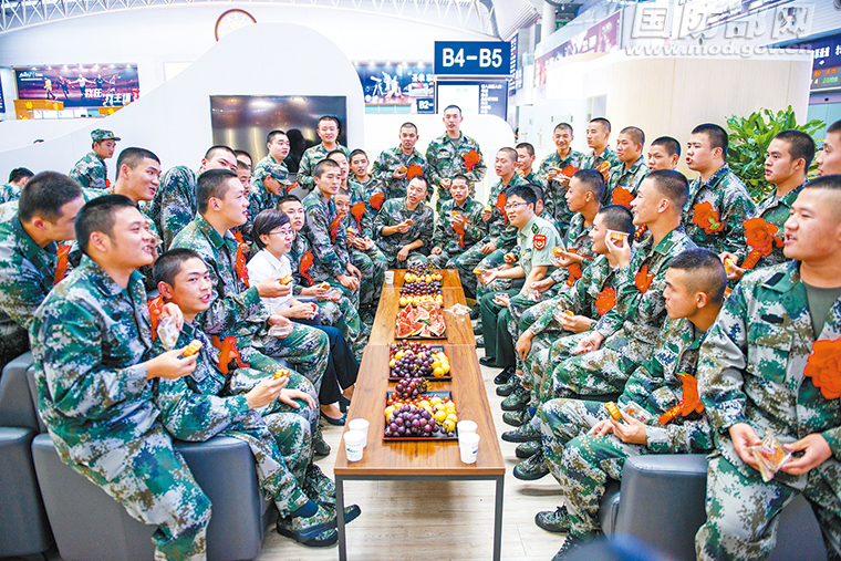 中秋节是举家团圆的日子。在这一天,对于身在奔赴军营旅途中的新兵们来说,难免会产生思乡之情。北部战区军事运输投送调度中心的保障人员对此早有考虑,并做出一系列周到安排。9月13日晚,在辽宁省沈阳北站中转的一批新兵感受到了军事运输保障人员的热情,度过了一个快乐祥和的中秋。