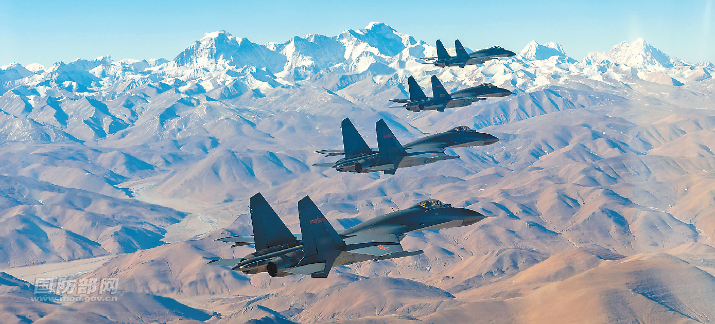 三月中旬,东部战区空军航空兵某旅在雪域高原组织编队突防、对抗空战等课目训练,提升部队作战能力。程 光摄