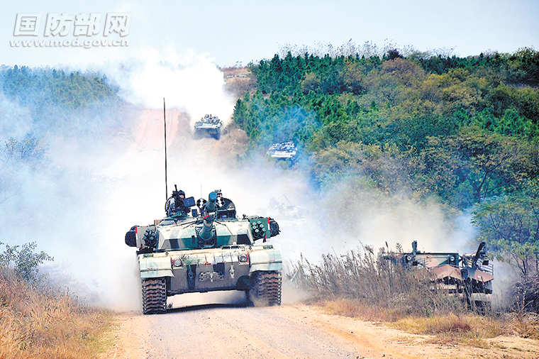 东部战区陆军某旅在陌生地域组织实弹射击考核,全面检验部队实战化训练水平。图为装甲分队机动开进。刘志勇 摄