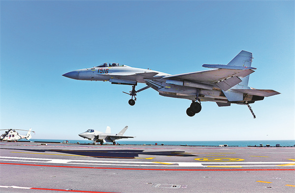 “我的祖国和我,像海和浪花一朵。浪是那海的赤子,海是那浪的依托……”当战机飞离甲板,翱翔于云端,俯瞰祖国的深蓝海疆与绵长海岸线,海军官兵心中明白:甲板上的每一次战斗,都是为了让祖国海疆永固,让万家灯火璀璨。