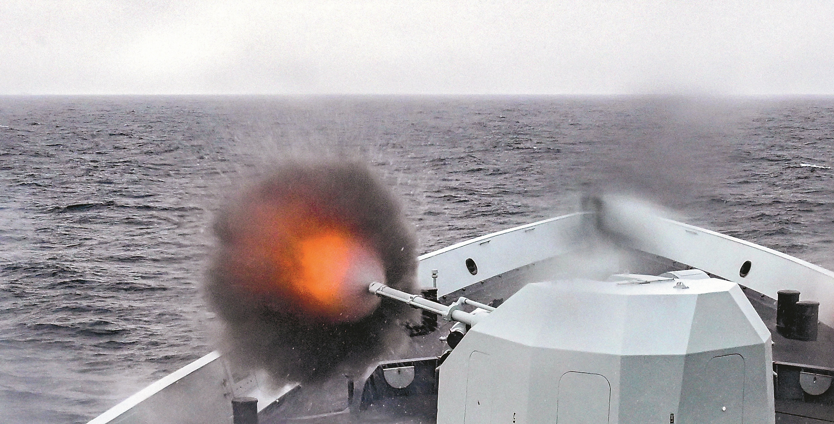 “‘敌’目标向我舰快速抵近!”指挥员沉着冷静,命令副炮战位进行防御射击。瞬间,炮弹倾泻而出,一举摧毁目标。