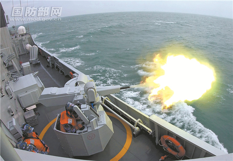 海军某护卫舰支队组织对海射击演练