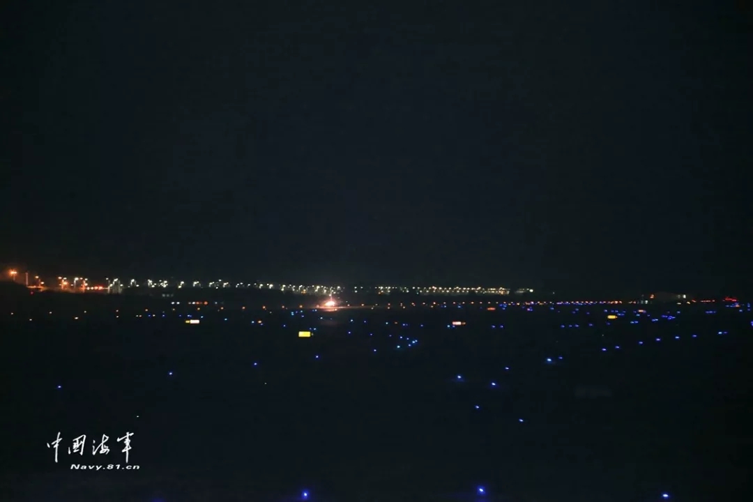 夜间,战机的每一次着陆,都有一束强光照亮跑道,灯光操作手精力集中,精准快速,默默地保障着战机归航路。