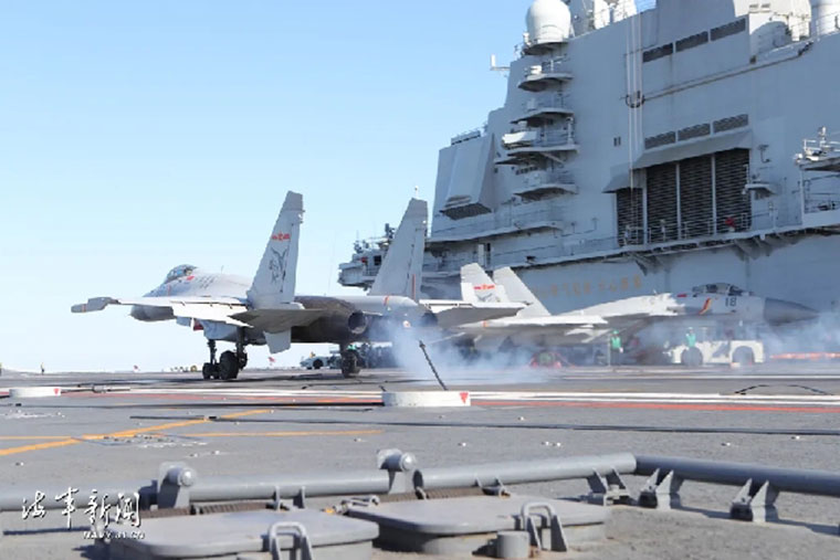 11月上旬,海军航空大学一名飞行学员驾驶歼-15舰载战斗机在辽宁舰成功实施阻拦着舰。杨皓 摄