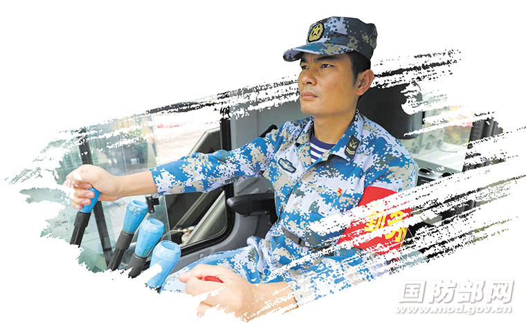 在大山深处,无数个孤独的日日夜夜,他坐在操作舱,推拉着5个操纵杆,模拟着将物资精准地吊放到军舰上,也憧憬着把轮胎印迹刻进军港里,延伸到大海上。