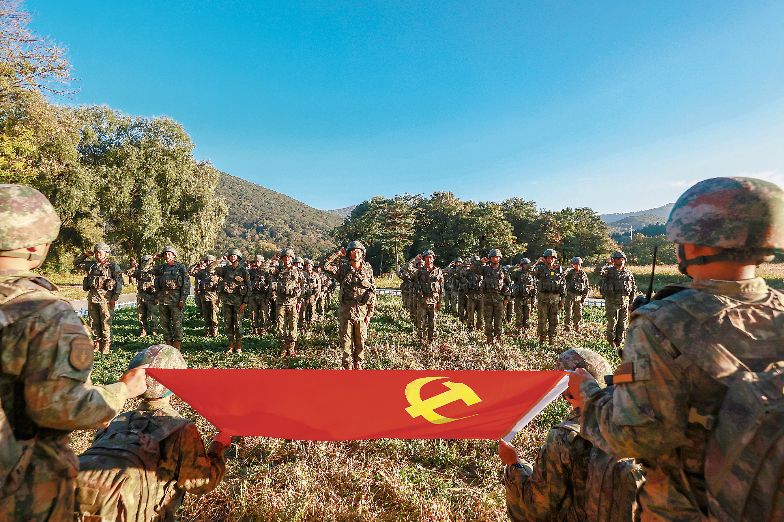 该旅在训练间隙组织官兵向党旗宣誓,激励官兵以昂扬斗志投身练兵备战。冯义桥 摄