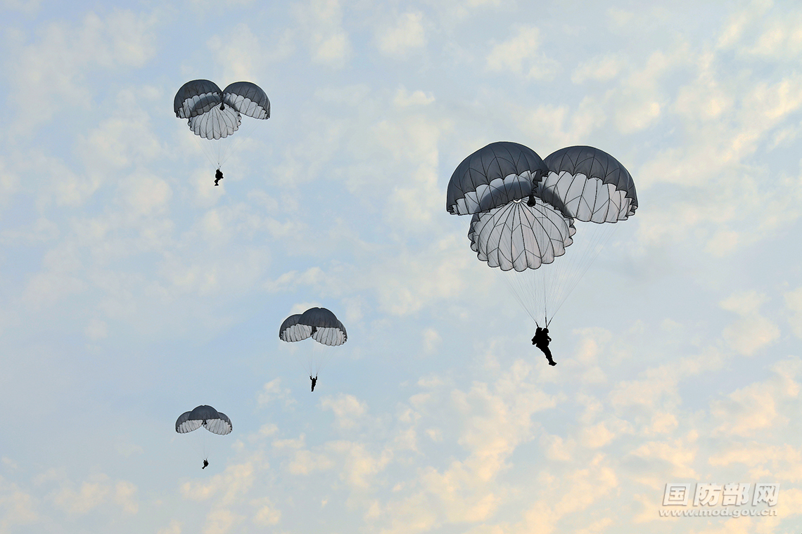 空降兵某旅组织跳伞训练