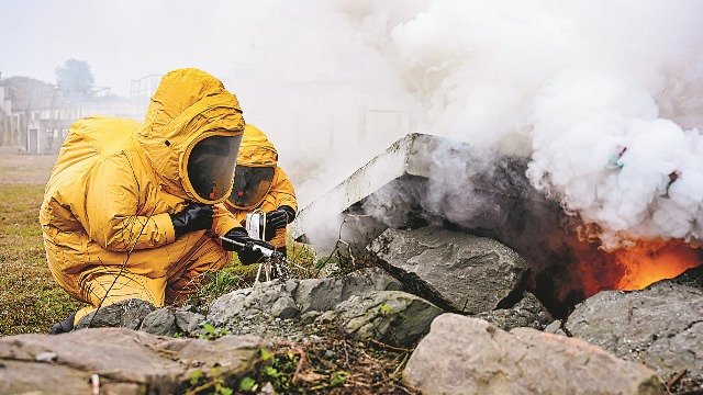 2023-04-28 09:28武警第一机动总队某支队组织防化演练