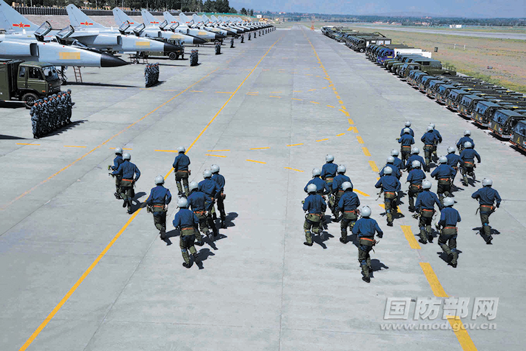空军航空兵某旅官兵奔向战位。王建朝 摄
