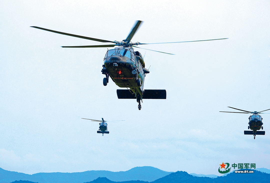 陆军某旅组织编队飞行训练