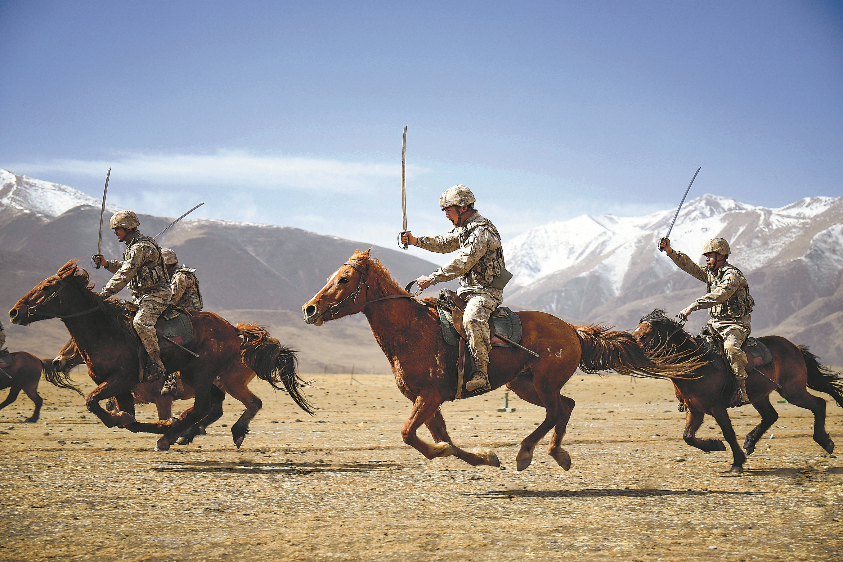 磨破的伤口结成厚茧,双臂也渐渐变得有力。经过一段时间努力,万方伟逐渐能在马背上完成战术动作,当初那个拿不稳马刀的大学生士兵,逐渐成长为一名合格的高原骑兵。