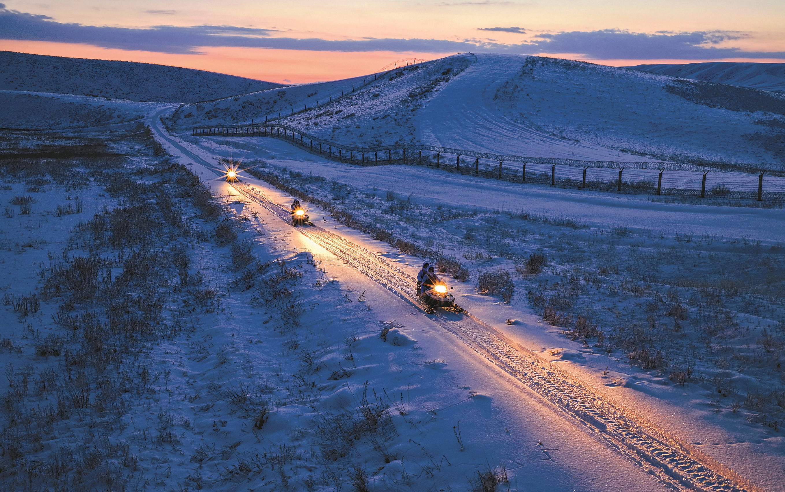 驾驶雪橇车巡逻。王越 摄